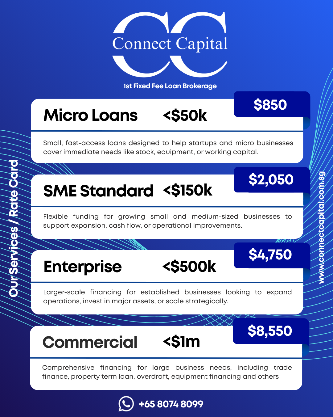 We are Singapore’s first fixed-fee brokerage designed to protect SME owners from hidden costs and confusing structures. Our role is simple: to help you understand your financing options clearly and confidently before making a decision.